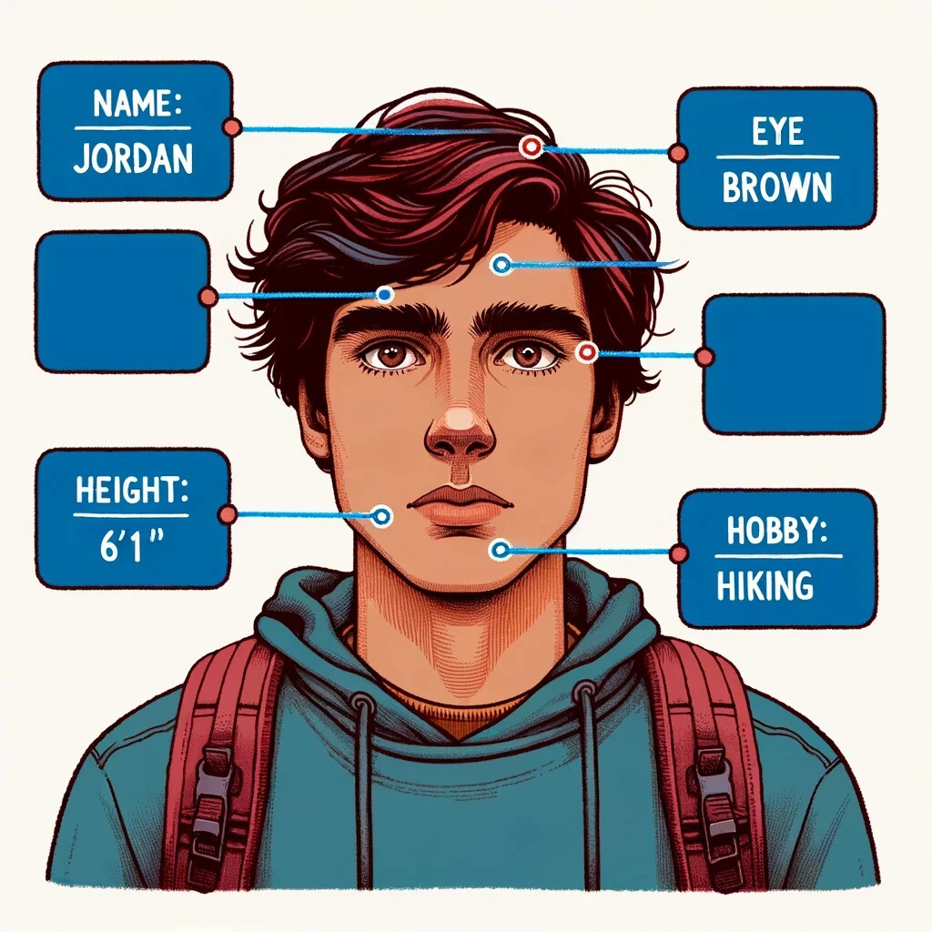 tu mejor amigo: tiene nombre, edad, color de ojos, hobbies, etc. Estas